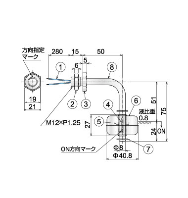 TOPステンレス製ヨコ取付 ステンレス製ヨコ取付/側面取付耐熱型 KS4T(Max.150℃) 価格: ¥11,220 (税込) 販売期間: 接点動作: 選択してください 下向きON 上向きON 数量: 個 在庫: ○ 在庫 ○ 返品についての詳細はこちら 商品詳細 最大使用電圧AC300V DC300V 最大開閉容量AC50VA DC50W 最大開閉電流AC0.5A DC0.5A 接点間耐電圧DC400V(1分間) 接点接触抵抗100mΩ以下(初期値) 耐圧力490KPa(フロート) 耐熱温度150℃ 対象液比重0.65以上 備考 MAX.150℃までの液体が測定できます。接点動作の下向き・上向きONどちらかを選択してください。